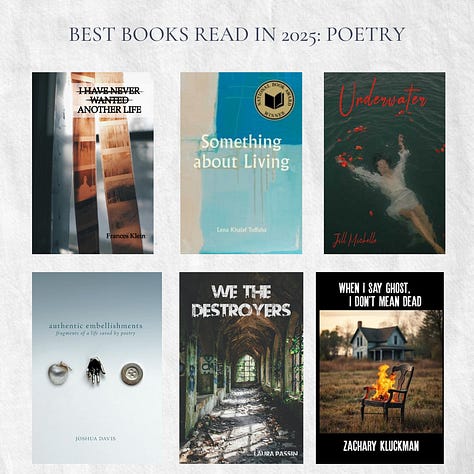Amidst all the chaos that was 2025, there were some good things: my fourth collection of poetry, Her Dark Everything, was published and I once again went on book tour across the country. I survived the longest government shutdown in American history. I traveled, I laughed, I worked out. I read poems and books. I taught workshops and I mailed postcards and I cooked dinner for friends. I baked, I yoga-ed, I wrote poems. I survived. And you did too. I hope the next year is better and brighter, for all of us.